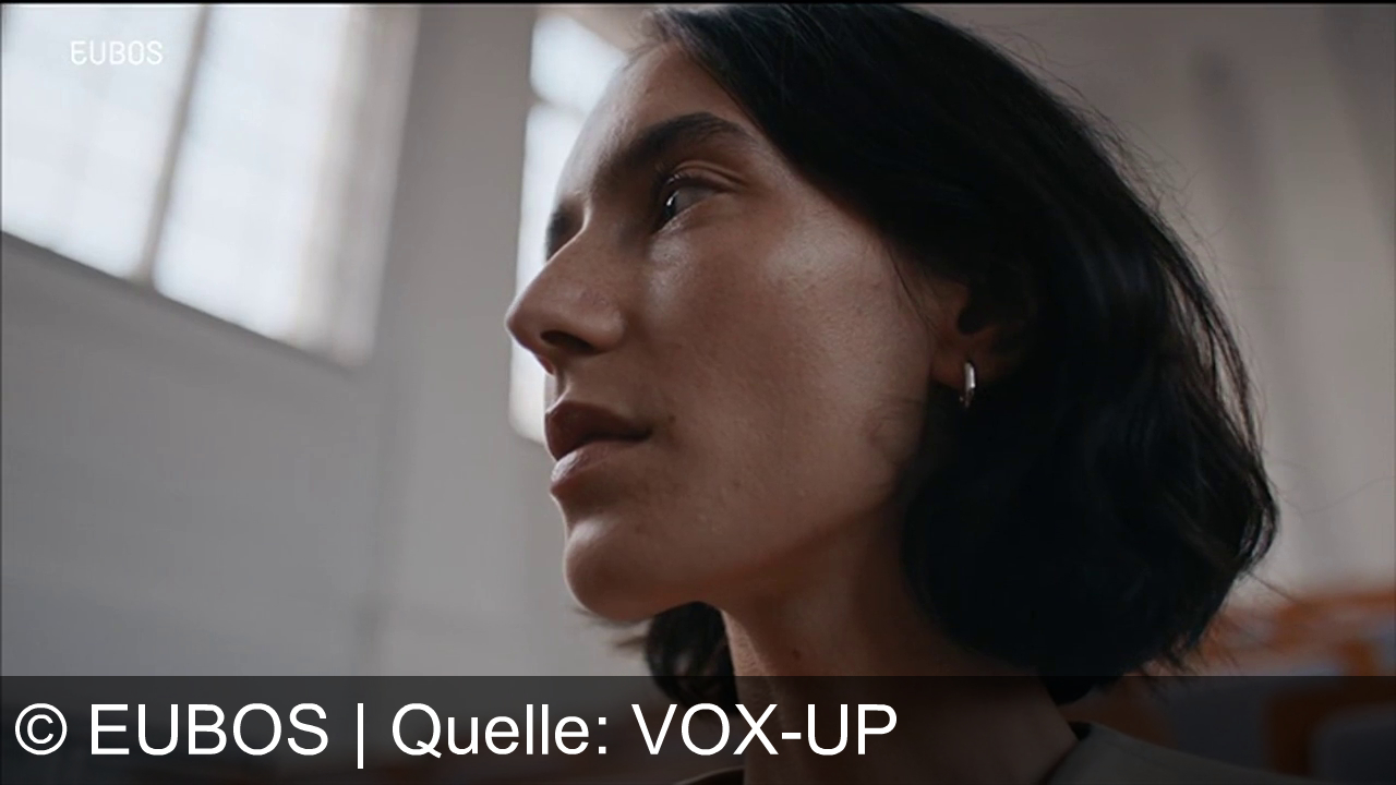 Eine Frau mit kurzen, dunklen Haaren und einem Ohrring schaut zur Seite. Hintergrund unscharf, Licht fällt durch Fenster. Oben links steht "EUBOS".