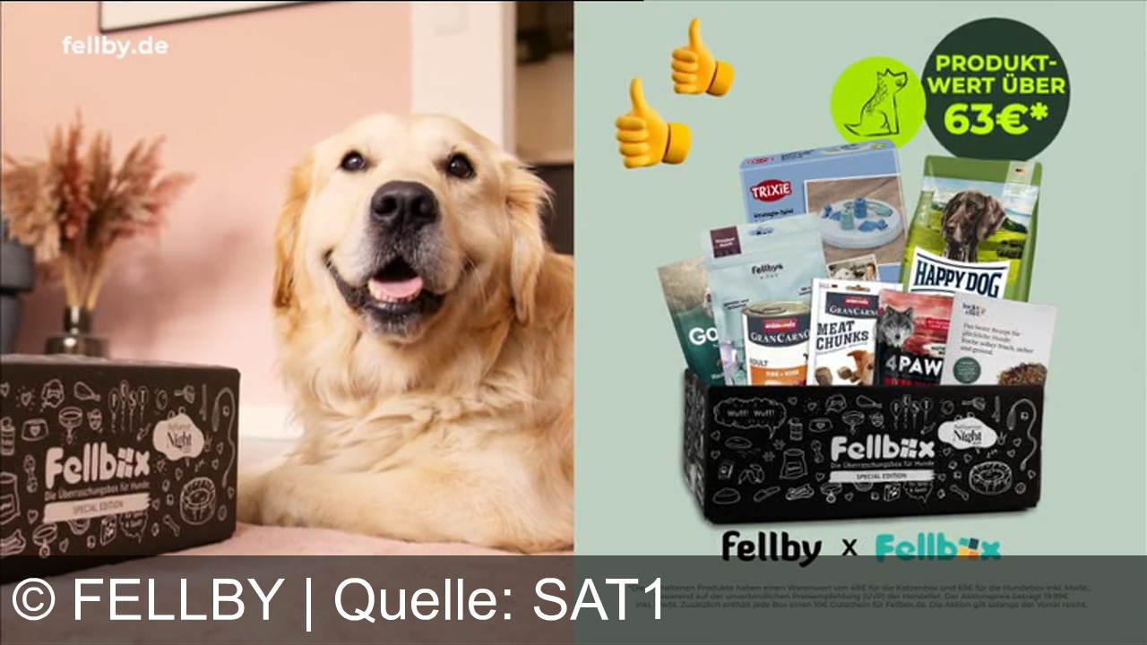 Werbung aus dem Jahr 2025 von Fellby in Deutschland, mit dem von uns gewählten Titel: "Fellby.de Fellbox: Hochwertiges Futter, Snacks & Spielzeug für Hunde und Katzen ab 19,99 €" mit der Kurzbeschreibung: "Entdecke die exklusive Fellby Überraschungsbox für Hunde & Katzen – Premium-Marken, spannende Produkte, Top-Preis! Jetzt auf fellby.de zuschnappen und deinen Vierbeiner begeistern!". Diese Werbung thematisiert oder beinhaltet die Kategorie/n Hund, Katze, Hundefutter, Katzenfutter, Spielzeug.