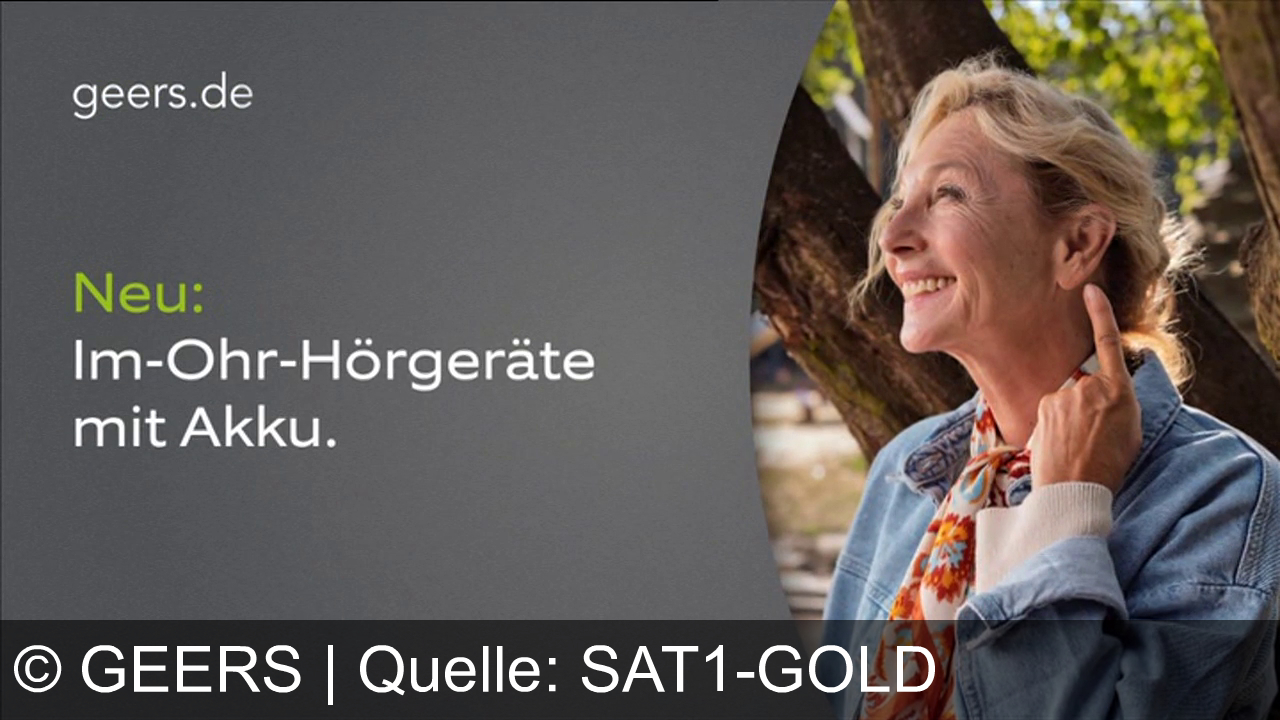 Aus meiner Sicht wird die Werbebotschaft sehr geradlinig kommuniziert: Die neuen Im-Ohr-Hörgeräte mit Akku sind klein, unauffällig und offensichtlich leicht zu bedienen – das betont die kurze Szene, in der die Frau sich ans Ohr fasst. Für mich wirkt das relativ überzeugend, weil es den Fokus auf Alltagstauglichkeit und Diskretion legt. Die wiederkehrende Einblendung von „geers.de“ verstärkt für mich die Markenpräsenz, ohne aufdringlich zu sein.