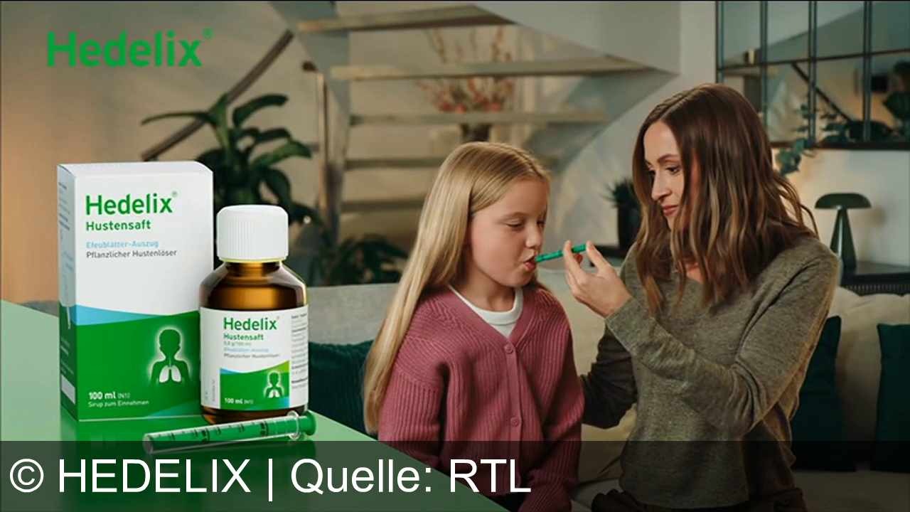 Werbung aus dem Jahr 2025 von Hedelix in Deutschland, mit dem von uns gewählten Titel: "Hedelix Hustensaft: Pflanzlicher Hustenlöser für die ganze Familie – jetzt in Ihrer Apotheke" mit der Kurzbeschreibung: "Hedelix Hustensaft – der pflanzliche Hustenlöser mit Efeublätterauszug für die ganze Familie. Befreit, lindert und erleichtert. Jetzt in Ihrer Apotheke!". Diese Werbung thematisiert oder beinhaltet die Kategorie/n Hustensaft, Erkältungsmittel, Apotheke, Medikamente, Gesundheit.