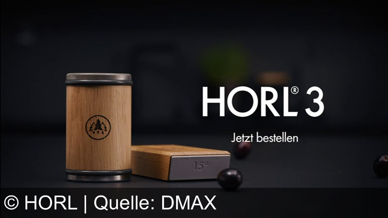 Der TV-Spot präsentiert den HORL 2 Rollschleifer: Ein hochwertiges, zylindrisches Schärfgerät mit Drei-Bäume-Logo, das Messer präzise und dauerhaft scharf hält. Ideal für Qualitätsbewusste, die Wert auf einfache Handhabung und perfekte Schärfe legen. Jetzt auf horl.com.