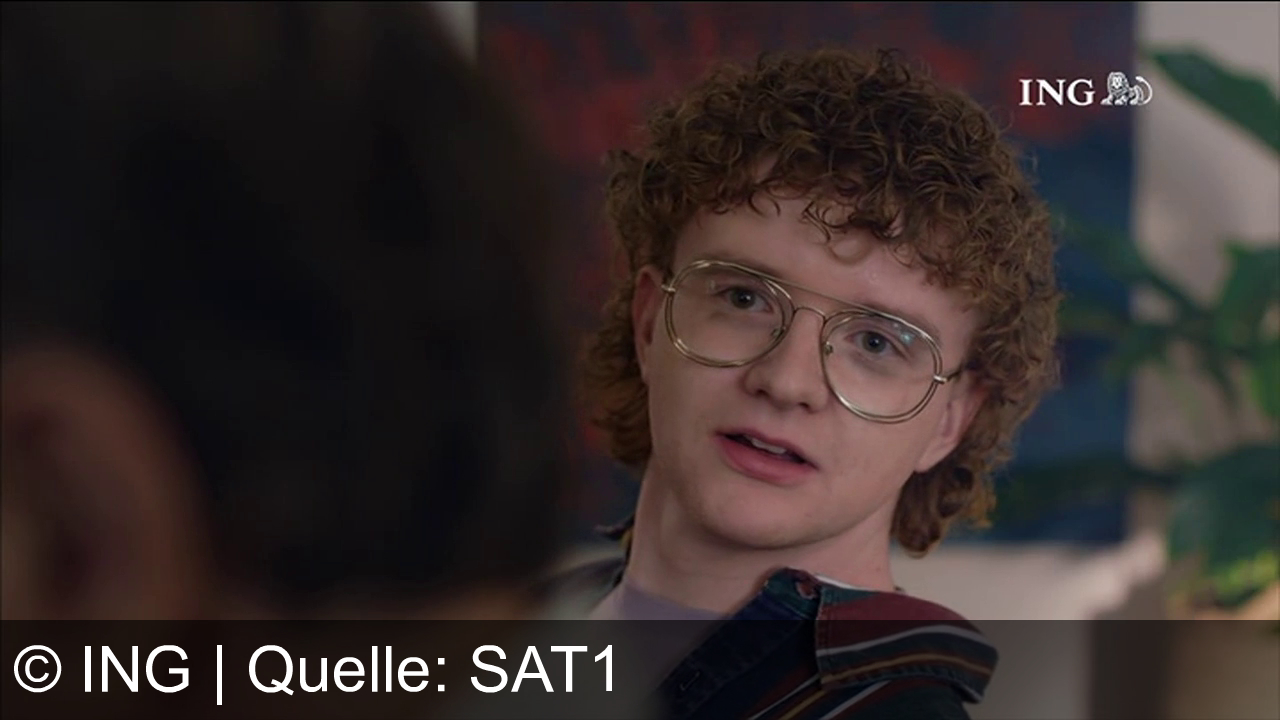 Ein junger Mann mit lockigem Haar und großer Brille schaut zur Seite. Er trägt ein gestreiftes Hemd. Im Hintergrund sind Pflanzen und ein Gemälde zu sehen. Oben rechts steht das Logo "ING" mit einem Löwen.