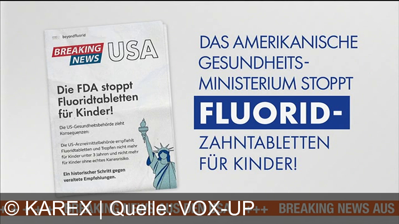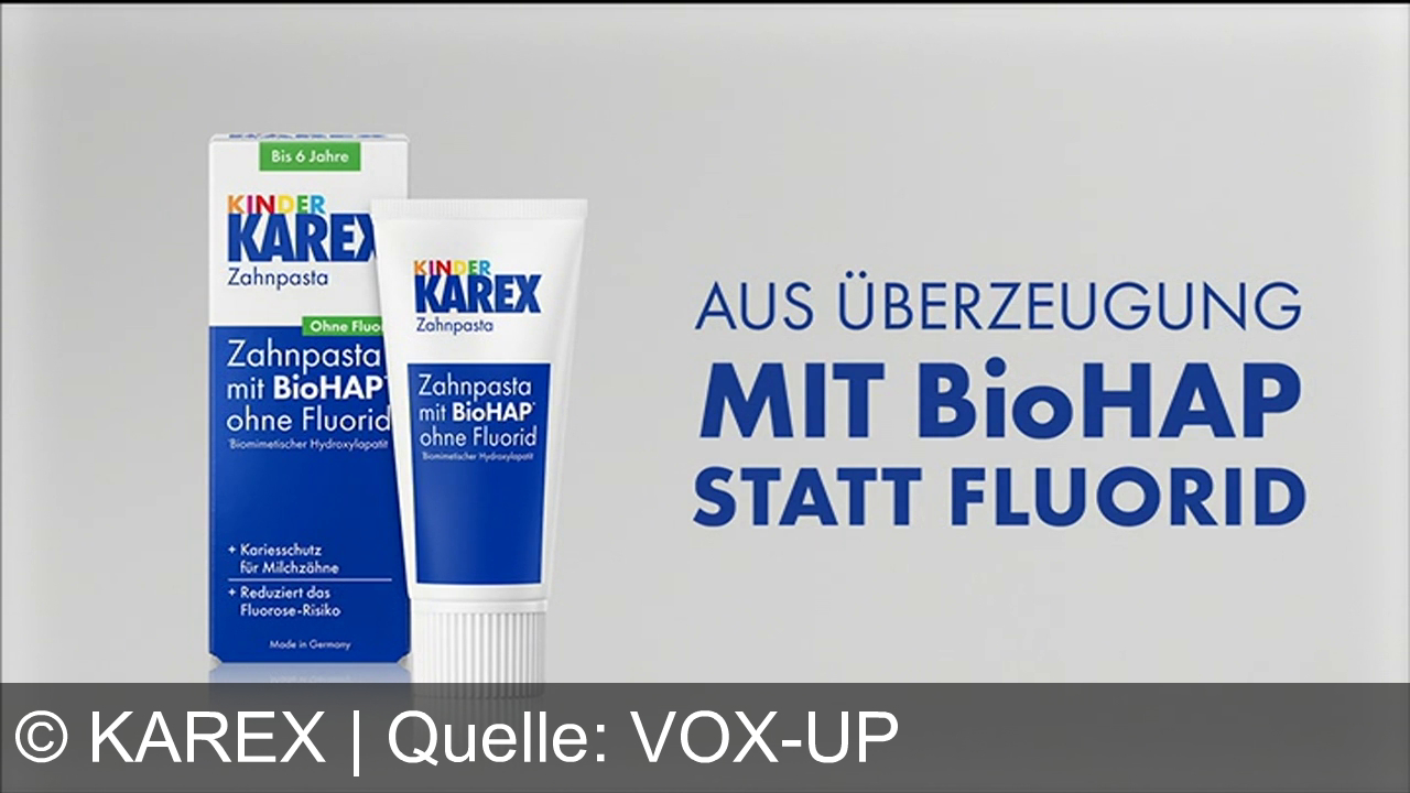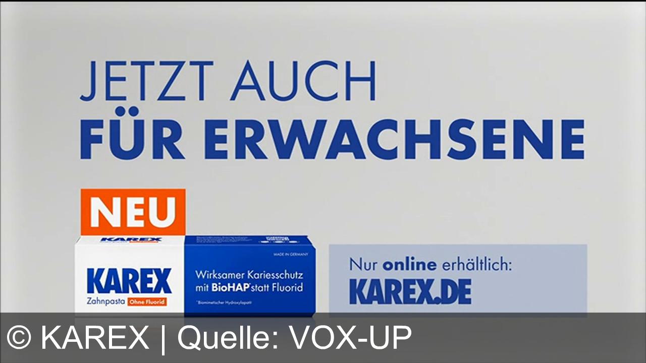 Werbung aus dem Jahr 2025 von Karex in Deutschland, mit dem von uns gewählten Titel: "KAREX Zahncreme: Effektiver Kariesschutz ohne Fluorid – gesunde Alternative mit BioHAP" mit der Kurzbeschreibung: "Breaking News aus den USA: KAREX Zahncreme – jetzt ohne Fluorid, mit BioHAP statt Fluorid. Zahnschutz für Kinder und Erwachsene – entscheiden Sie selbst!". Diese Werbung thematisiert oder beinhaltet die Kategorie/n Zahnpasta, Gesundheit, Zahnbürste.