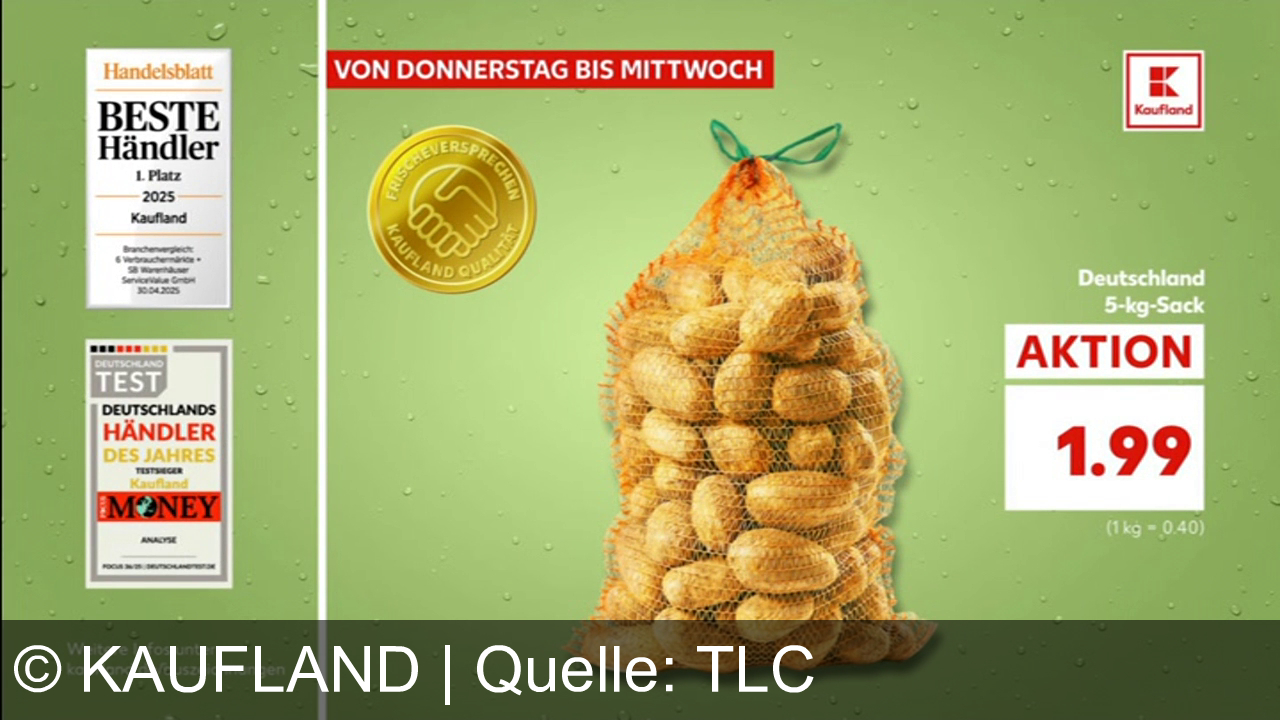 Werbung aus dem Jahr 2025 von Kaufland in Deutschland, mit dem von uns gewählten Titel: "Frische deutsche Speisekartoffeln für nur 1,99 € – Vielfalt und Qualität bei Kaufland erleben" mit der Kurzbeschreibung: "Frisch, vielfältig, preiswert – Kaufland zeigt deutsche Speisekartoffeln zum Aktionspreis. Unsere Frische, unser Versprechen. Kaufland – hier bin ich richtig!". Diese Werbung thematisiert oder beinhaltet die Kategorie/n Supermarkt, Obst & Gemüse, Gemüse, Salat.