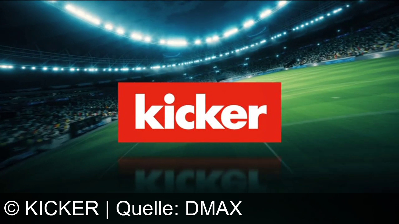 Ein Stadion mit beleuchteten Rängen. Im Vordergrund ein rotes Rechteck mit dem weißen Schriftzug "kicker". Der Rasen leuchtet grün, Zuschauer sind im Hintergrund.