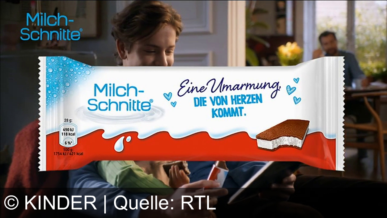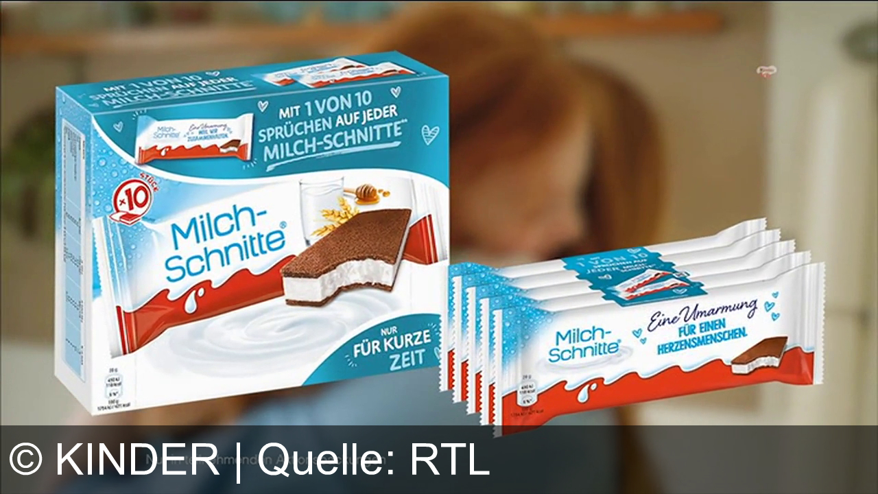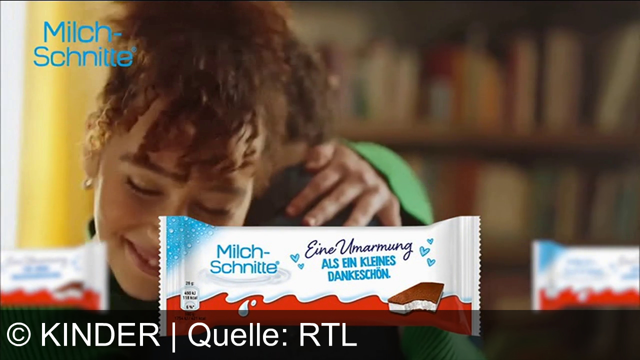 Werbung aus dem Jahr 2025 von Kinder in Deutschland, mit dem von uns gewählten Titel: "Neue Kinder Milch-Schnitte Riegel: 10 liebevolle Sprüche für süße Überraschungen und Herzensmenschen" mit der Kurzbeschreibung: "Mehr Freude, mehr Umarmungen: Mit kinder® MILCH-SCHNITTE™ und 10 Sprüchen auf jeder Packung jetzt Herzensmenschen überraschen – nur für kurze Zeit!". Diese Werbung thematisiert oder beinhaltet die Kategorie/n Süßigkeiten, Lebensmittel.