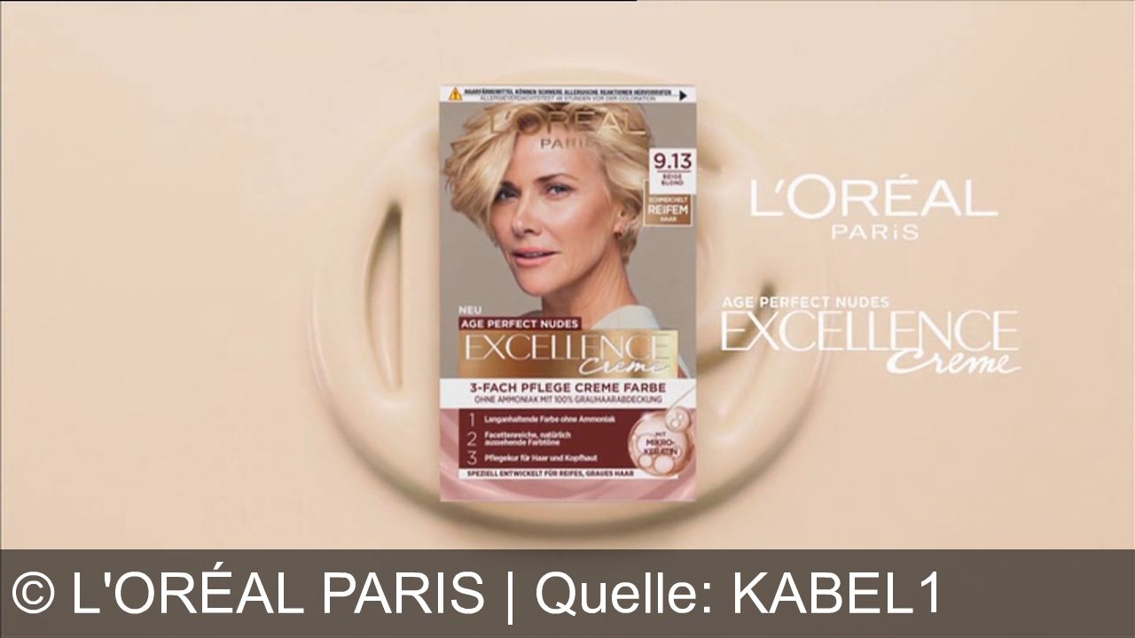 In einem TV-Spot bewirbt Gillian Anderson die Haarfarbe Excellence Age Perfect Nudes von L'Oreal Paris. Das speziell für reifes Haar entwickelte Produkt ohne Ammoniak verspricht eine vollständige Grauhaarabdeckung sowie 50 Prozent weniger Haarbruch. Die Werbebotschaft betont ein natürliches Ergebnis, das optimal auf die Bedürfnisse im Alter abgestimmt ist.