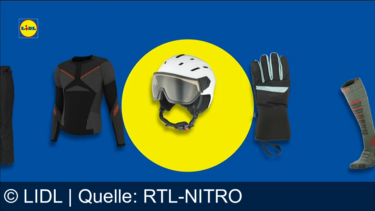 Lidl bewirbt preisgünstige Wintersportbekleidung: Funktionsunterwäsche ab 9,99 € und Skihosen mit Lidl Plus für 19,99 €. Die Produkte sind in der Filiale und online verfügbar. Werbebotschaft: Hochwertige Skibekleidung günstig bei Lidl – Lidl lohnt sich.