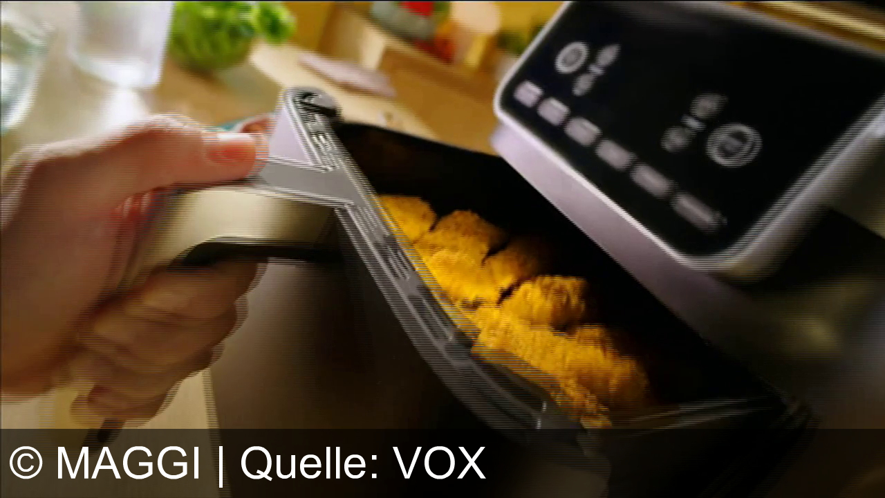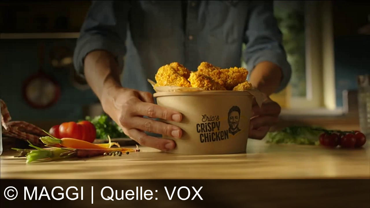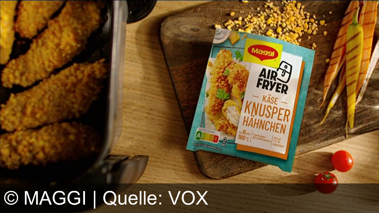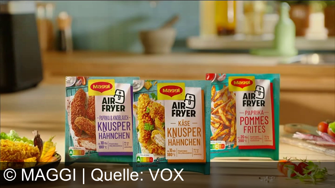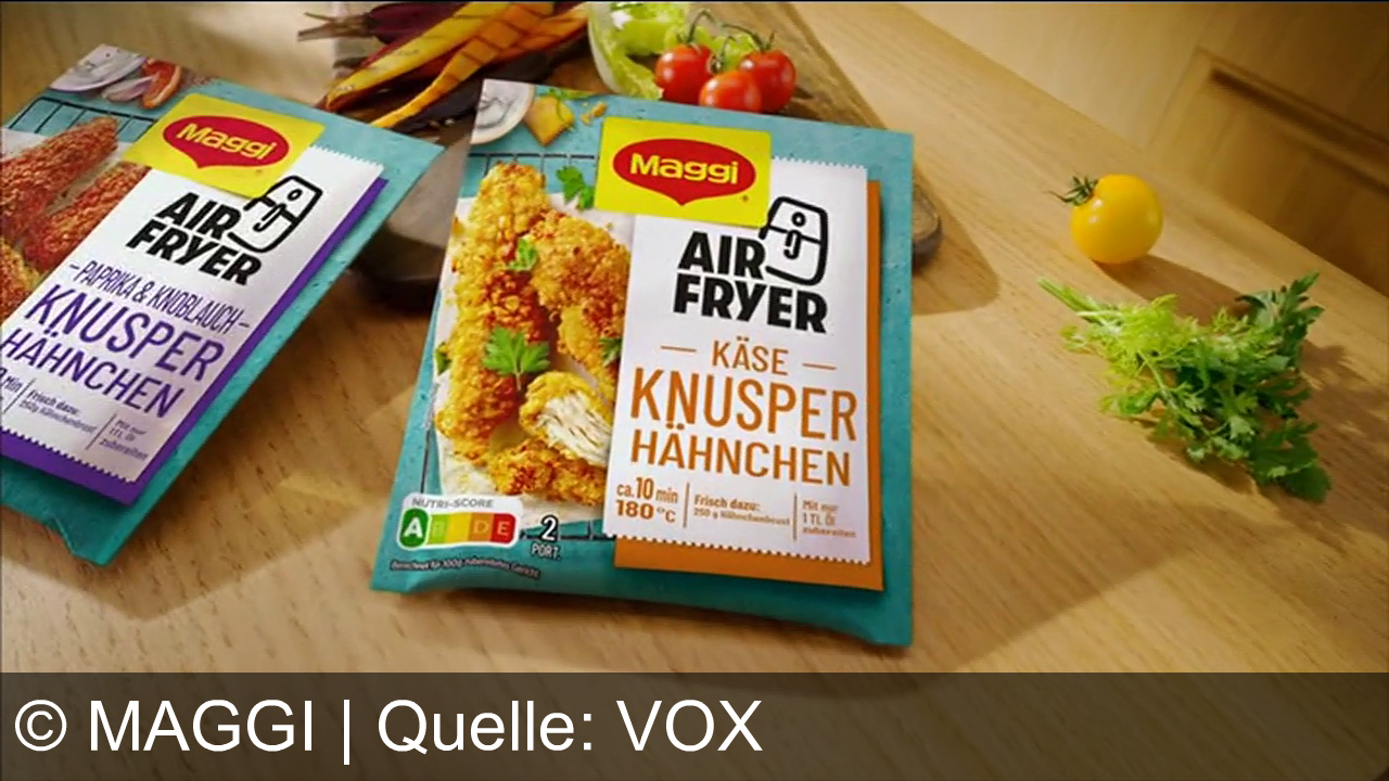 Maggi bewirbt die neuen Airfryer-Produkte für knuspriges Hähnchen und mehr, die einfach und schnell zu Hause zubereitet werden können. Die Werbebotschaft: Knuspriger Genuss dank Maggi, inspiriert von Eric – entdecke jetzt vielseitige Airfryer-Rezepte für dein Zuhause.