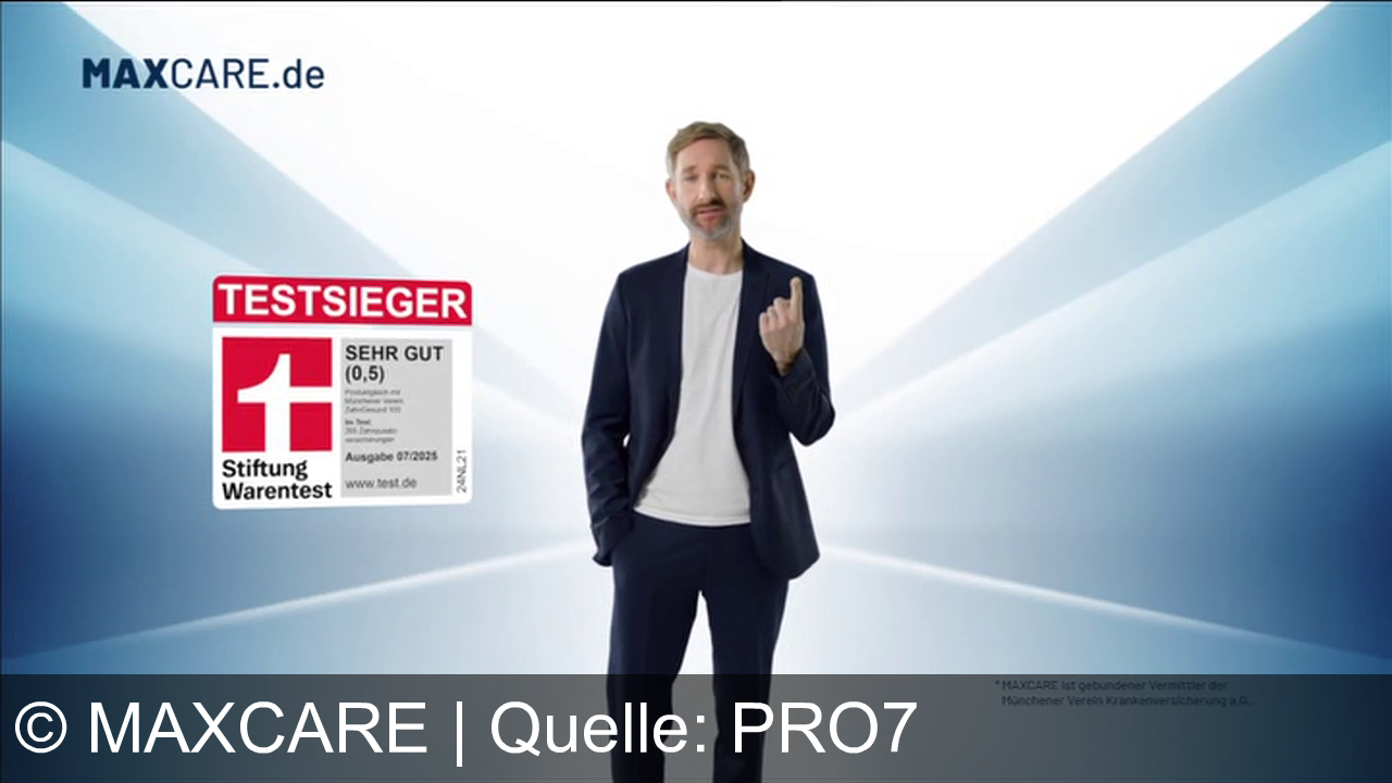 Maxcare Werbung aus dem Jahr 2025 in Deutschland, mit dem von uns gewählten Titel: "Maxcare Zahnzusatzversicherung: Bis zu 100 % Kostenübernahme beim Zahnarzt – Testsieger sichern" mit der Kurzbeschreibung: "Maxcare und Münchener Verein: Testsieger bei Stiftung Warentest, 100 % Zahnarztkosten, starke Zahnzusatzversicherung – jetzt auf maxk.de wechseln!". Diese Werbung thematisiert oder beinhaltet die Kategorie/n Zahnversicherung, Versicherung, Gesundheit, Vorsorge.