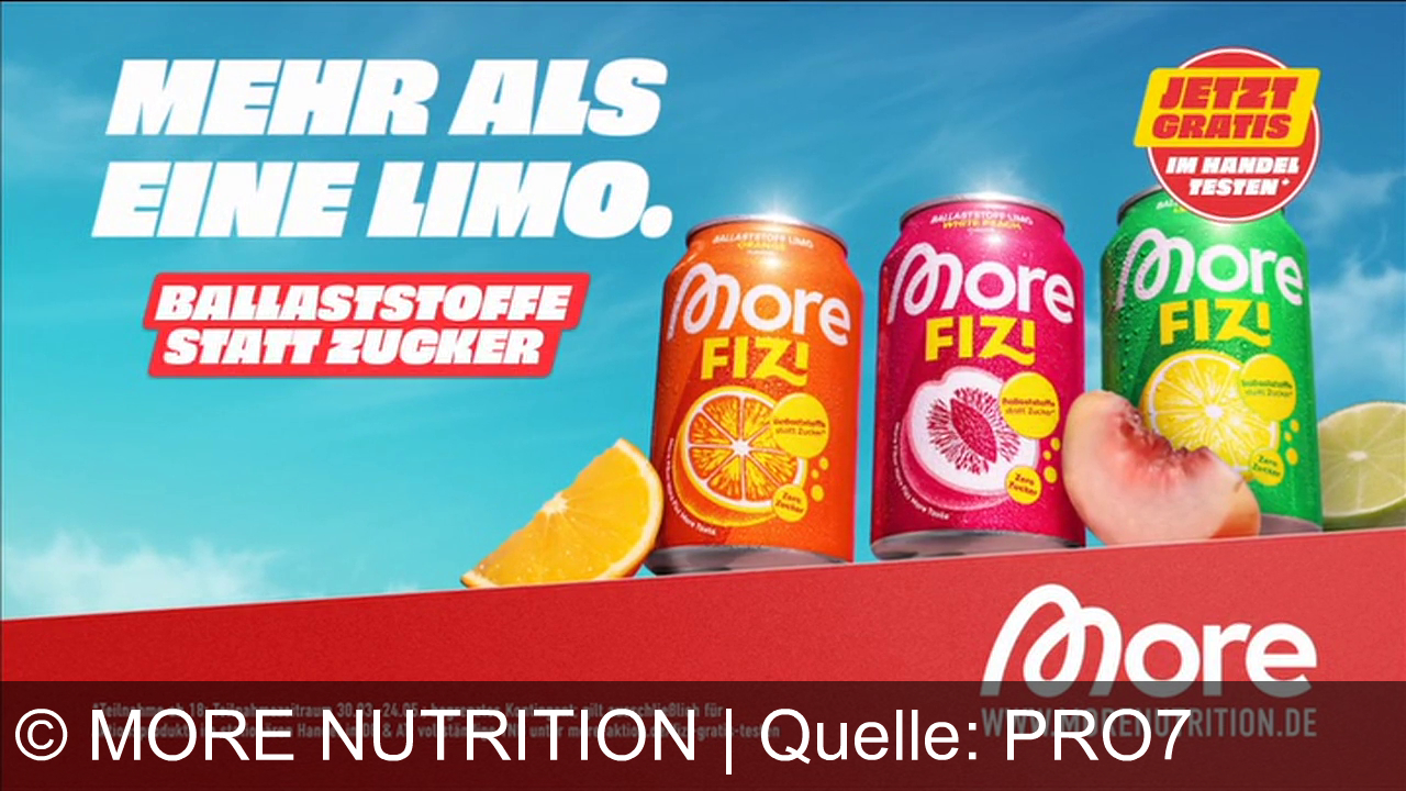 Der TV-Spot bewirbt das Erfrischungsgetränk More Fizzy von More Nutrition. Das Produkt wird als smarte Alternative zu zuckerhaltigen Limonaden positioniert, da es auf Ballaststoffe statt Zucker setzt. Die Werbebotschaft verspricht ein leckeres, prickelndes Geschmackserlebnis ohne Reue und lädt dazu ein, das Getränk aktuell gratis im Handel zu testen.