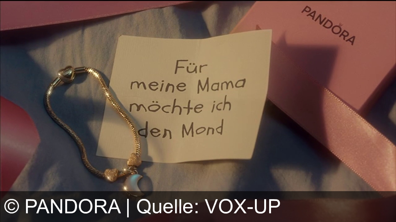 Pandora bewirbt Schmuck, insbesondere ein Armband mit Mondanhänger, als liebevolles Geschenk für die Mutter. Die Botschaft: Zeige besondere Wertschätzung mit Pandora – „Ich liebe dich bis zum Mond“. Die Dienstleistung umfasst Auswahl und stilvolle Geschenkverpackung.
