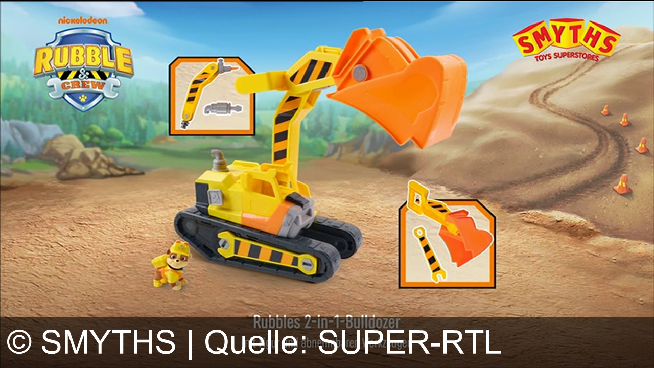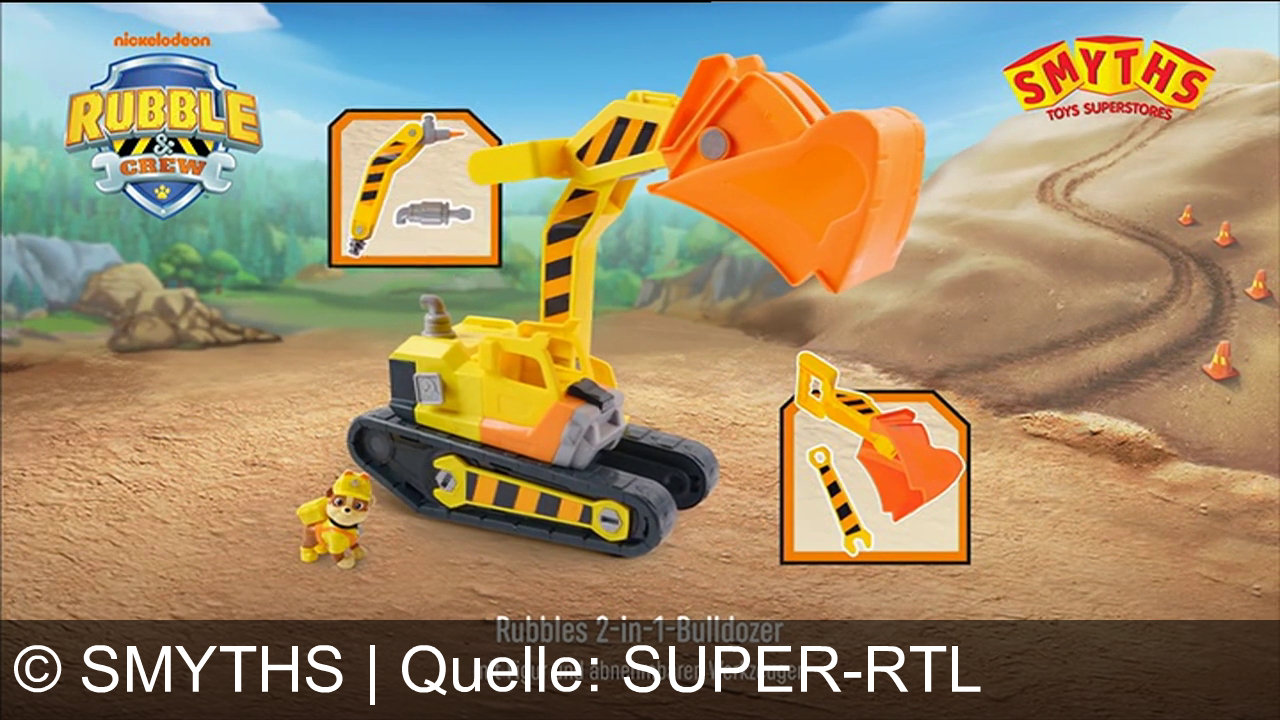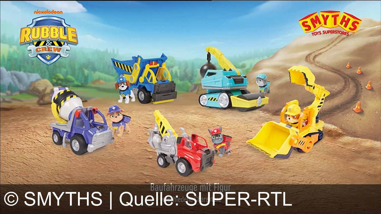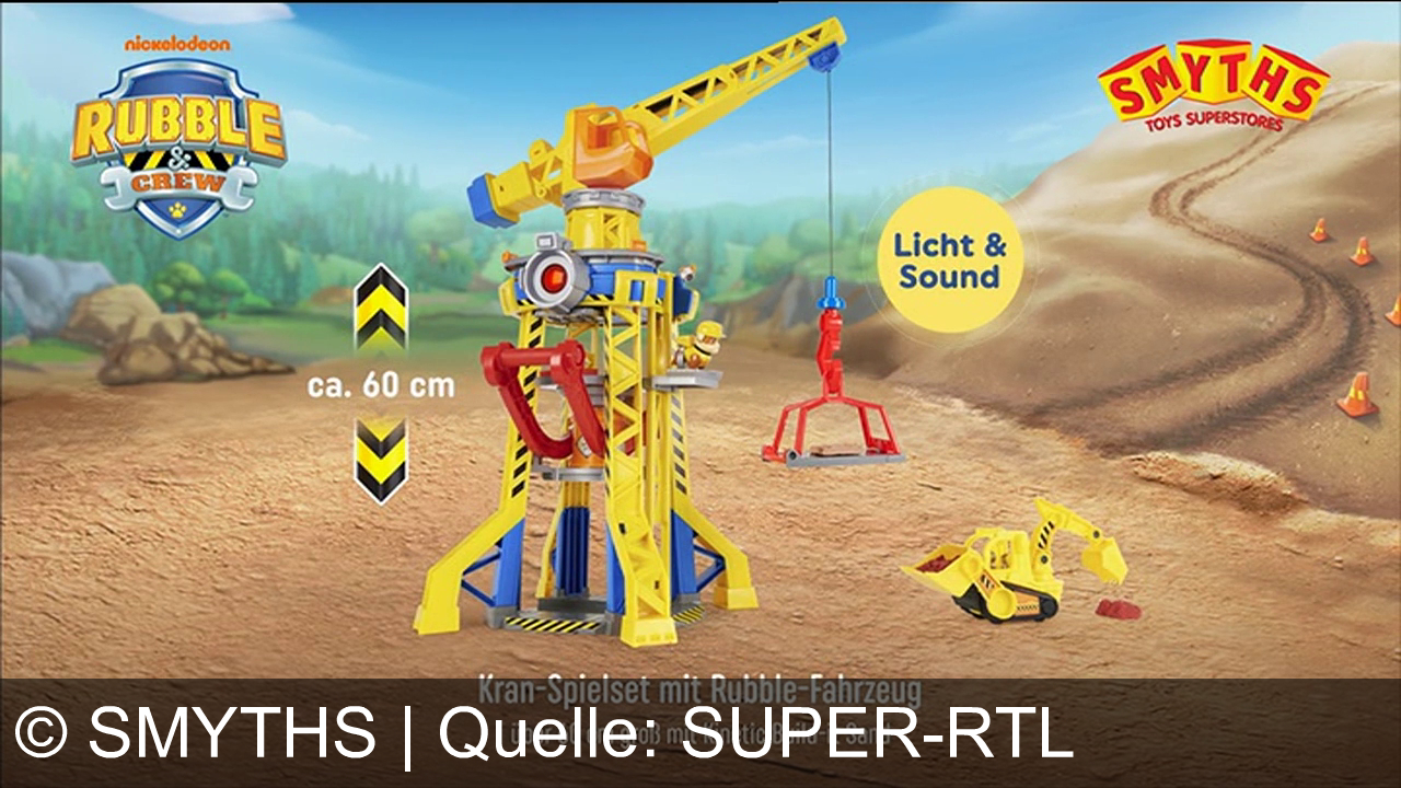 Werbung aus dem Jahr 2025 von Smyths in Deutschland, mit dem von uns gewählten Titel: "Baue wie ein Profi: Erlebe mit Rubble & Crew Baufahrzeug-Abenteuer bei Smyths Toys" mit der Kurzbeschreibung: "Bautastische Abenteuer mit Rubble & Crew von Smyths Toys Superstores: Mit 2-in-1-Bagger und Mega-Baukran meisterst du jede Baustelle wie ein Profi!". Diese Werbung thematisiert oder beinhaltet die Kategorie/n Spielzeug, Spielzeug, Spielzeug, Spielzeug, Spielzeug.
