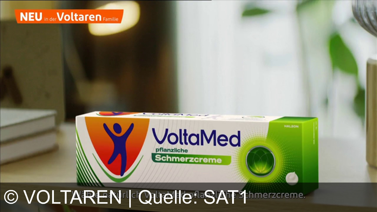 Werbung aus dem Jahr 2025 von Voltaren in Deutschland, mit dem von uns gewählten Titel: "VoltaMed von Voltaren: Natürliche Schmerzcreme mit 3 Pflanzenstoffen für mehr Beweglichkeit im Alltag" mit der Kurzbeschreibung: "Natürlich wirksam gegen Schmerzen: Voltamed pflanzliche Schmerzcreme mit drei kraftvollen Pflanzenwirkstoffen für effektive Linderung. Natürlich Voltamed!". Diese Werbung thematisiert oder beinhaltet die Kategorie/n Salbe, Medikamente, Apotheke, Gesundheit.