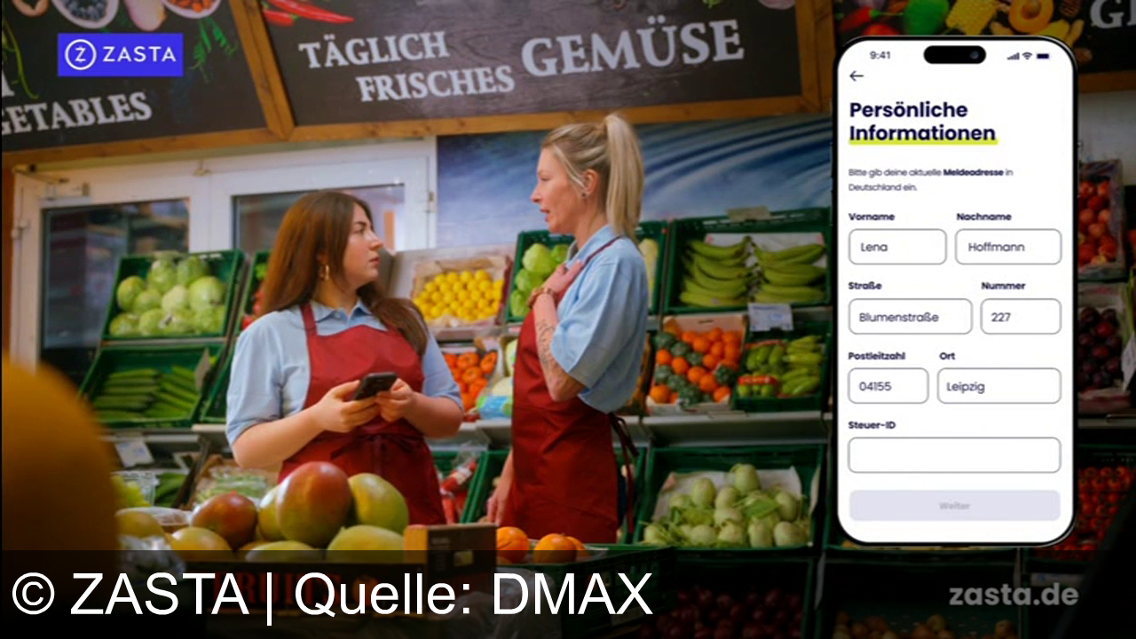 Der TV-Spot bewirbt die „Zasta“-App, eine Dienstleistung zur einfachen Rückerstattung von Steuern. In einem Supermarkt-Szenario wird die App als schnelle Lösung für finanzielle Engpässe präsentiert: Nutzer müssen lediglich Basisdaten eingeben, um eine durchschnittliche Erstattung von 1.172 € zu erhalten. Fokus ist die unkomplizierte Handhabung.