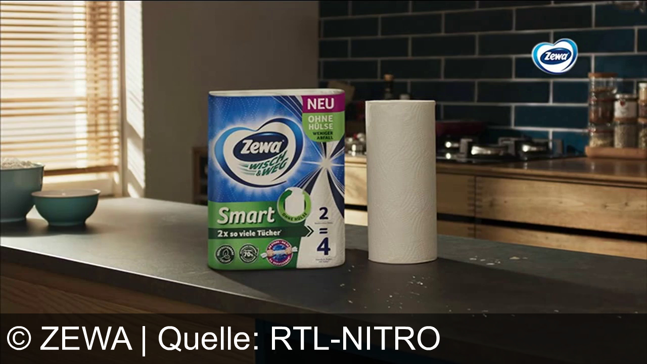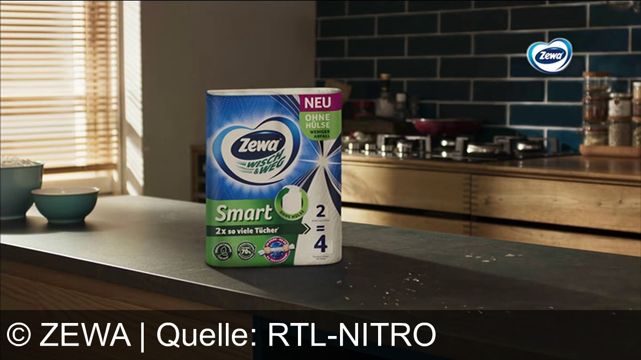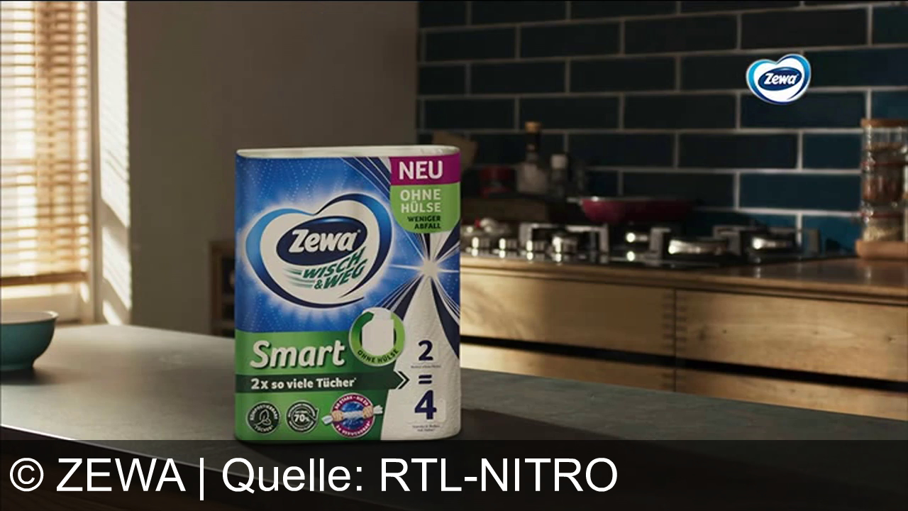 Zewa Werbung aus dem Jahr 2026 in Deutschland, mit dem von uns gewählten Titel: "Zewa Wisch&Weg Smart: Doppelte Tücher, null Papphülse – smarter wischen." mit der Kurzbeschreibung: "Zewa Wisch und Weg Smart: Die Küchenrolle ohne Papphülse, mit doppelt so vielen Tüchern für weniger Abfall. Ein gutes Gefühl.". Diese Werbung thematisiert oder beinhaltet die Kategorie/n Haushaltswaren.