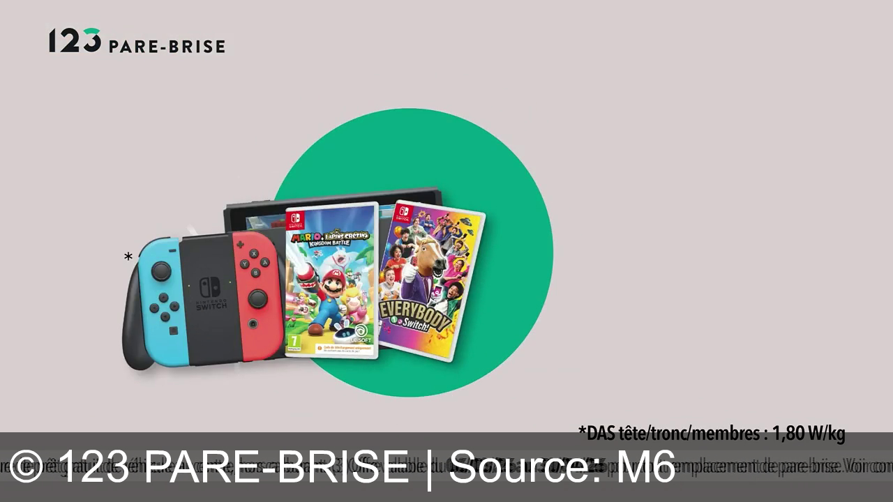 Publicité 123 Pare-brise de l'année 2026 en France, avec le titre que nous avons choisi : "Votre pare-brise remplacé, une Nintendo Switch offerte chez 123 Pare-Brise !" et la brève description : "123 Pare Brise : répare et remplace votre pare-brise à 0€, avec un véhicule prêté. Offre spéciale : une Nintendo Switch + 2 jeux ! Prenez RDV sur 123parabrise.fr. La vraie bonne surprise.". Cette publicité traite ou inclut la/les catégorie(s) Garage Automobile, Gaming, Jeux.