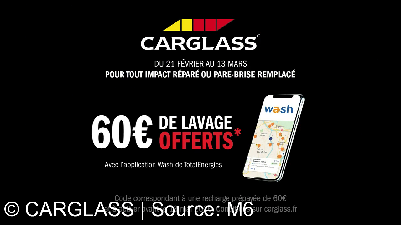 Carglass propose la réparation rapide d’impacts sur pare-brise en 30 minutes. Le spot souligne la simplicité de la prise de rendez-vous en ligne. Actuellement, pour toute intervention, Carglass offre 60 € de lavage via l'appli Wash de TotalEnergies. L'objectif est de promouvoir un service expert, pratique et accompagné d'une offre promotionnelle.
