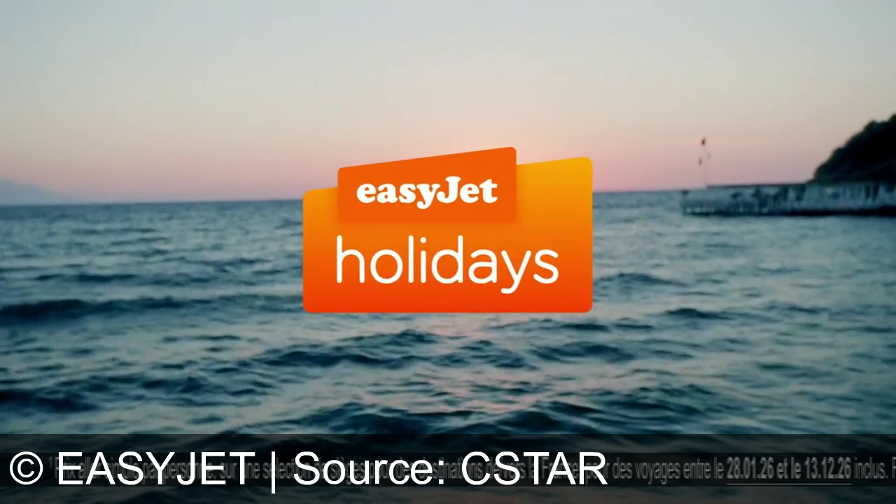 EasyJet promeut des vols dès 35€ et des séjours dès 379€, invitant à vivre pleinement ses vacances. Le spot montre voyages, détente et découvertes pour souligner des offres simples, abordables et accessibles. Message clé: réservez facilement et « Get out there! ».
