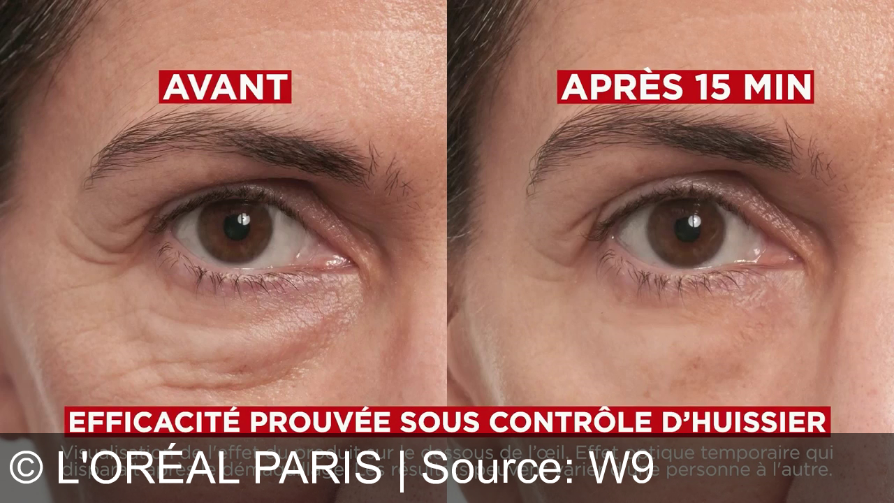 L'Oréal Paris présente le nouveau Revitalift Laser, un correcteur de poches instantané. Appliqué après le maquillage, ce soin réduit visiblement les cernes et lisse les rides en seulement 15 minutes. La publicité promet un résultat spectaculaire et immédiat pour un regard rajeuni, illustré par des démonstrations avant/après convaincantes.