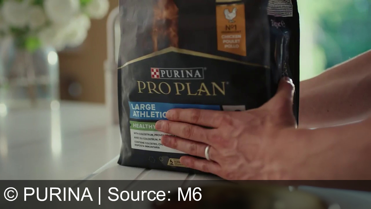 Selon ma perspective, l'originalité est ici sacrifiée sur l'autel de la clarté pédagogique. Je pense notamment à la mise en scène du produit en cuisine. Le geste de poser le sac et de remplir la gamelle avec une mesure en cuivre est d'une propreté clinique, ce qui assure certes une cohérence de marque haut de gamme, mais limite l'aspect organique de la relation animal homme. Ma vision des choses est que le slogan Le nourrir comme un pro, Purina Pro Plan, fonctionne efficacement comme une conclusion logique, mais il n'est le fruit d'aucune tension narrative préalable.