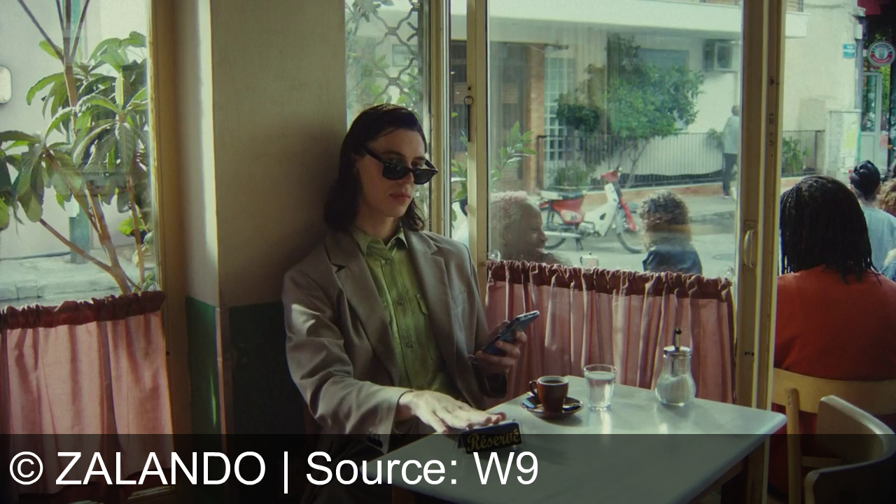 Publicité Zalando de l'année 2026 en France, avec le titre que nous avons choisi : "Zalando : Tout le style et le bonheur de l'été à portée de main en terrasse" et la brève description : "Zalando : mode, shopping, bonheur. Tout à portée de main.". Cette publicité traite ou inclut la/les catégorie(s) Lunettes, Lunettes De Soleil, Café, Robe, Vêtements.