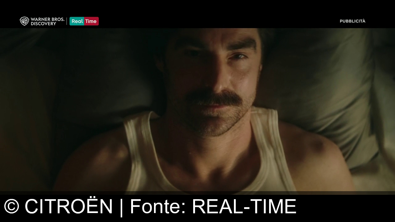 Un uomo con baffi e barba leggera è sdraiato su un letto, indossa una canottiera bianca. Il suo sguardo è diretto verso l'alto. Nell'angolo in alto a sinistra c'è il logo di Warner Bros. Discovery e Real Time. In alto a destra c'è la scritta "PUBBLICITÀ". Lo sfondo è scuro e la luce è soffusa.
