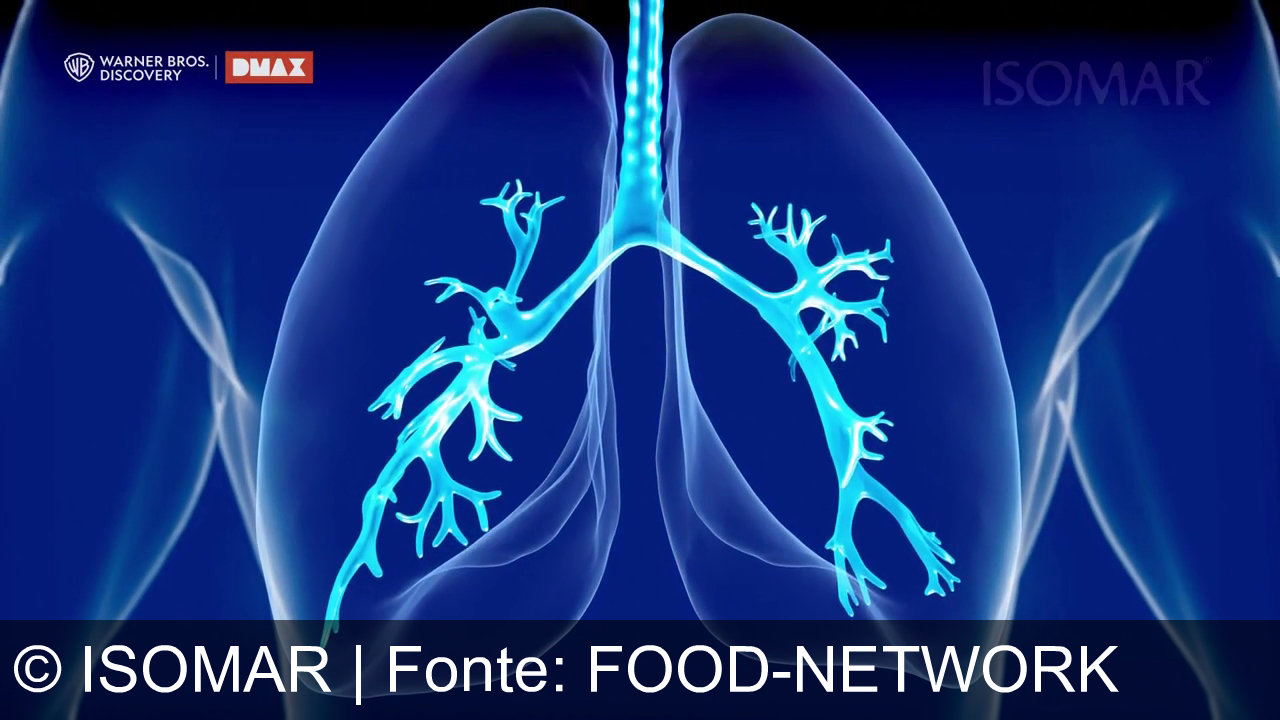 Sfondo blu con una rappresentazione stilizzata dei polmoni umani. I bronchi appaiono in azzurro acceso. In alto a sinistra ci sono i loghi di Warner Bros. Discovery e DMAX. In alto a destra, il logo di Isomar.