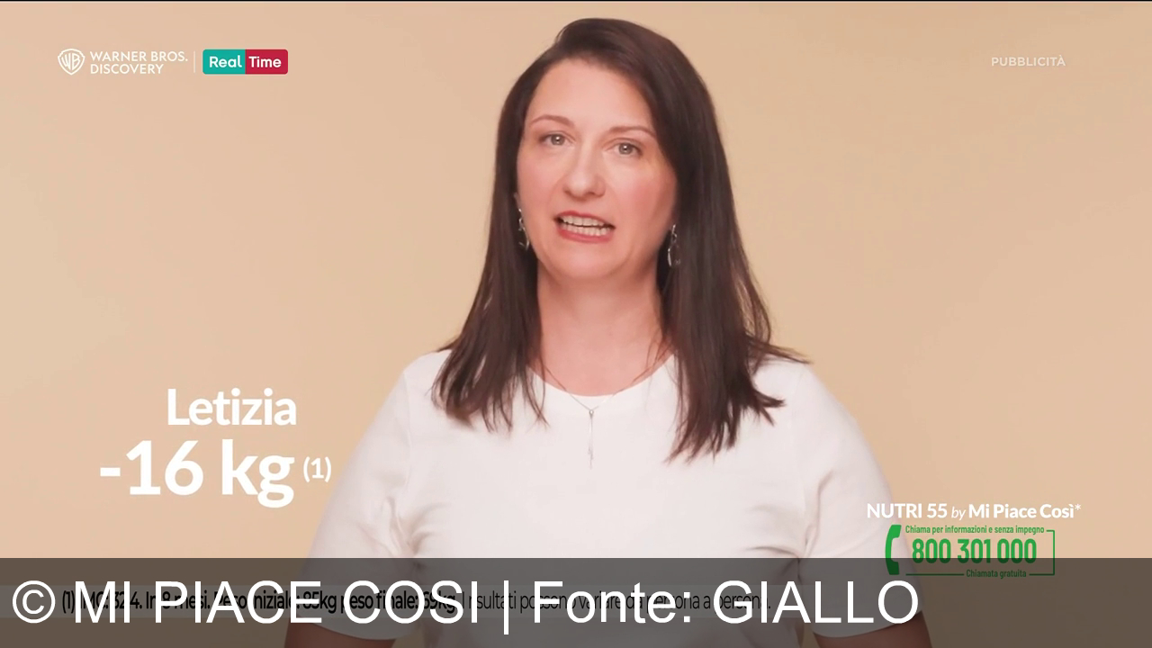 Nutri 55 di Mi Piace Così è un programma dimagrante proteico personalizzato per donne, ideato per favorire la perdita di peso in modo efficace anche dopo una certa età, come dimostrato da Letizia (-16 kg). Maggiori info su mipiacecosi.it o chiamando il numero verde.