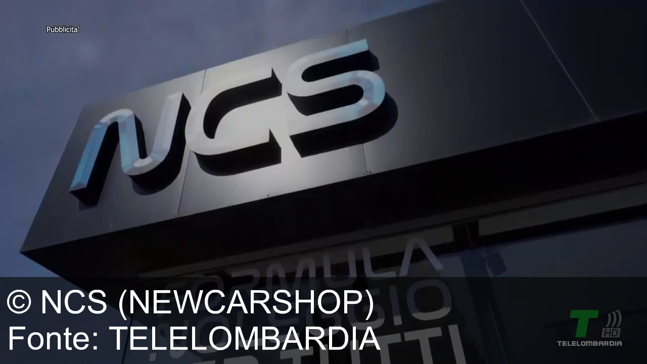 Un'insegna con la scritta "NCS" è visibile in alto su uno sfondo blu. Sotto di essa, una vetrina mostra le parole "Formula Noleggio per Tutti". In alto a sinistra, compare la parola "Pubblicità". In basso a destra c'è il logo di "TELELOMBARDIA T HD".
