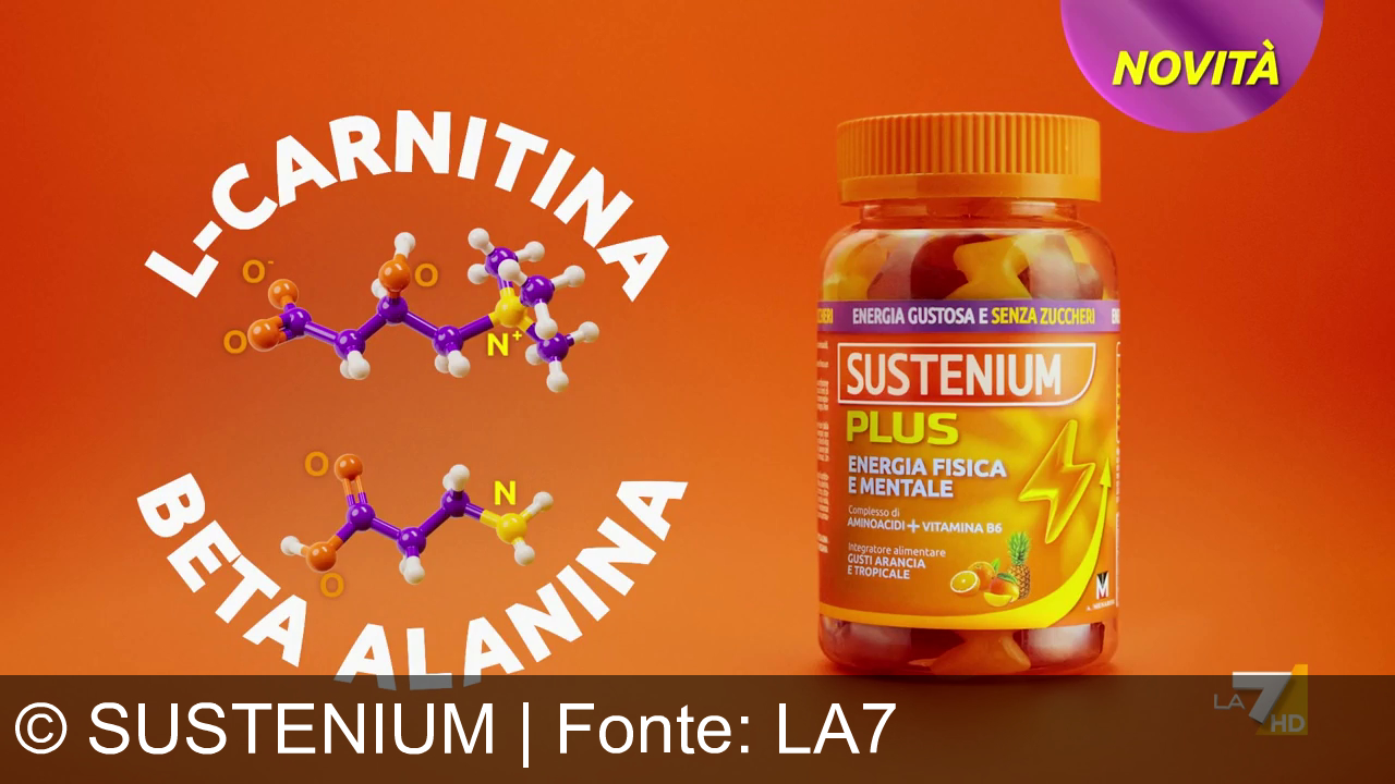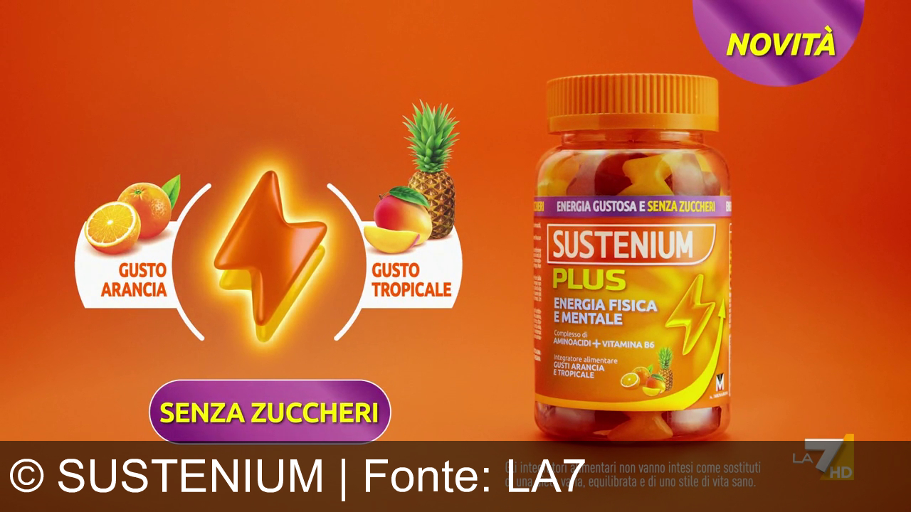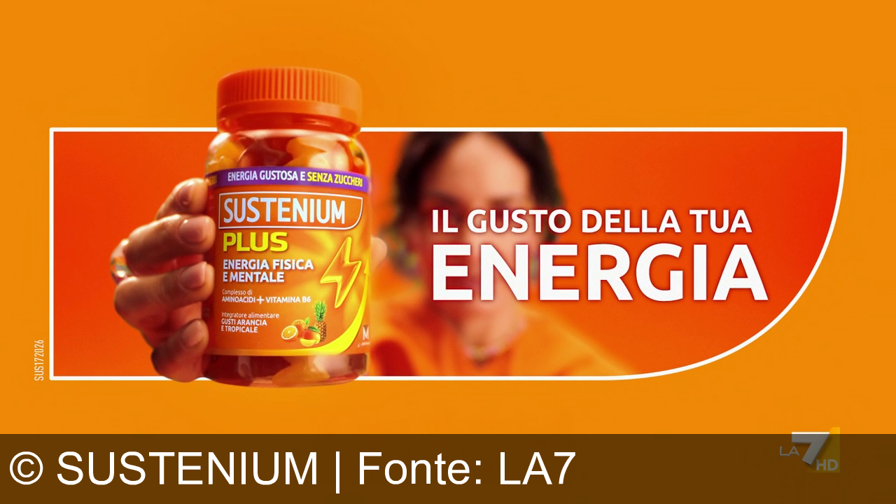Sustenium promuove la linea Plus con un focus su energia e vitalità. Lo spot presenta le nuove gommose senza zuccheri, ricche di aminoacidi (L-carnitina e beta-alanina), e i flaconcini 50+ con ActiFull e vitamina B12. Il messaggio centrale invita a combattere la stanchezza con "il gusto della tua energia", puntando su dinamismo e benessere.